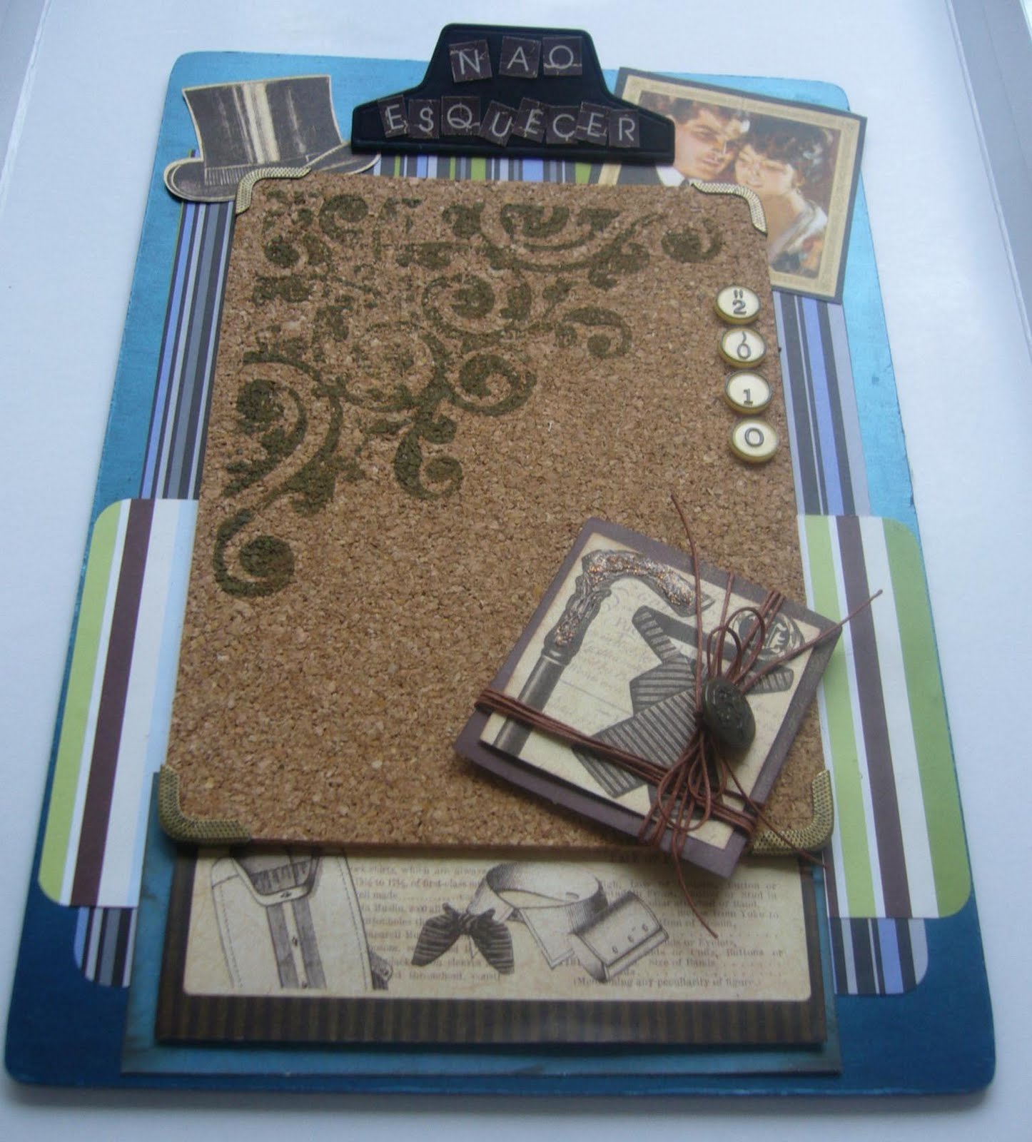 depois apliquei folhas de scrapbooking da Graphic 45 coleção A Proper Gentleman e papeis repeteco,