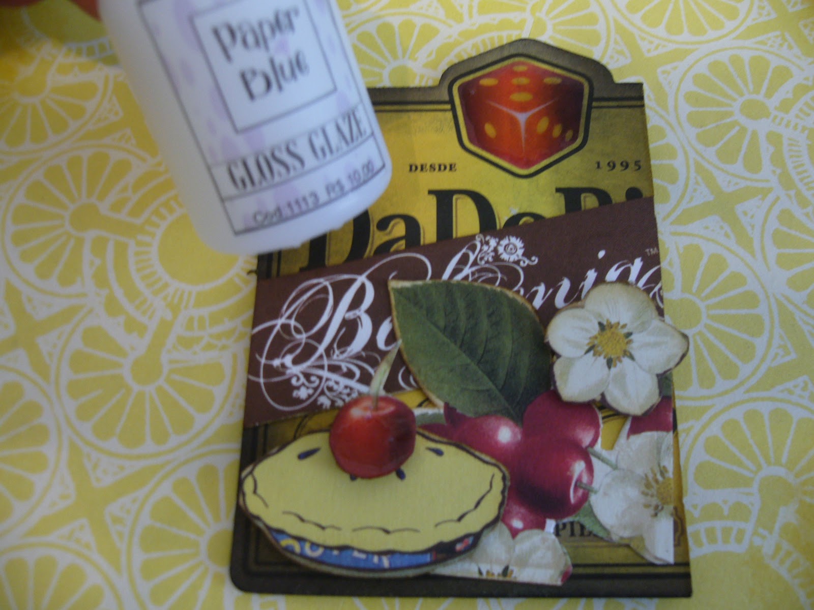 ganhamos já com a intenção de criar lindos projetos...como detalhes na pagina e esse ATC que aplicamos Gloss Glaze em detalhes como dado a cerejinha...