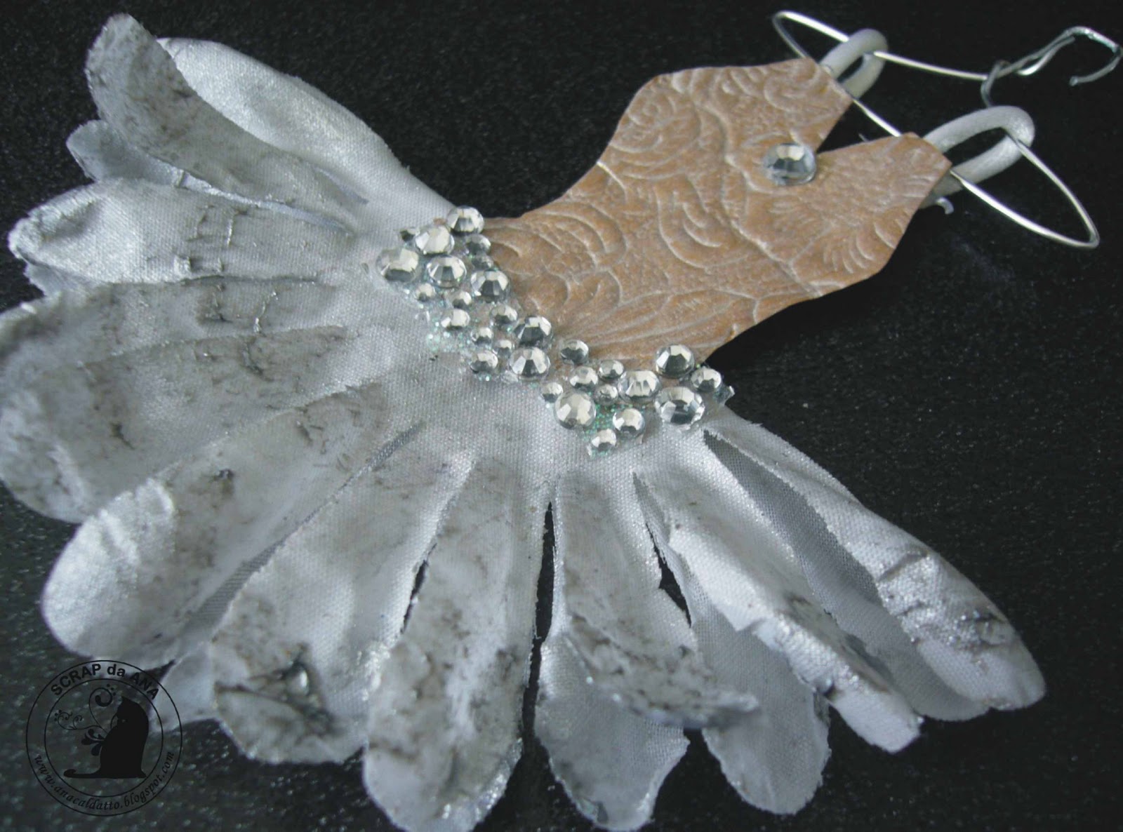 na saia da bailarina usei flores brancas e passei tintas e texturas