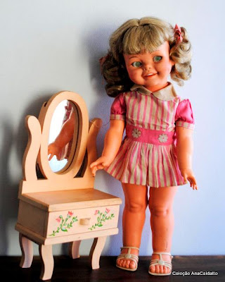 Aiiii gente, eu achava essa boneca uma gracinha. Era da minha mãe e ela passou pra mim qd eu era criança (junto da Beijoca, q tinha o vestidinho azul).... mas eu MORRIA DE MEDO dela. As vezes a risadinha dela acionava sozinha! Hahahahah