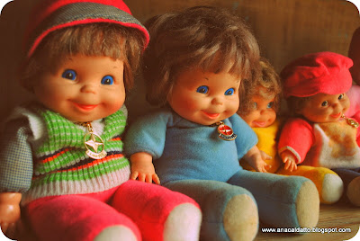 anos 70 e 80 foi moda ter bichinhos e bonecas de panos como brinquedos:
