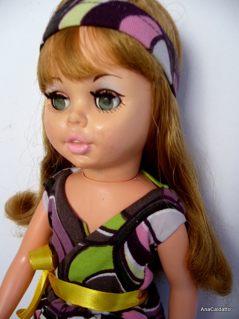 Eu também tenho uma, não sei se está lembrada, eu consegui remover parte do fungo, e os olhos dela estão endurecidos para fechar, mas é uma boneca muito bonita, parece miniatura da Candy.