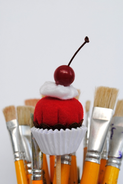 uma delas é uma lata velha que decorei com papeis de scrapbooking em 2010 transformando em local dos Pincéis, para visualizar outras fotos click AQUI
