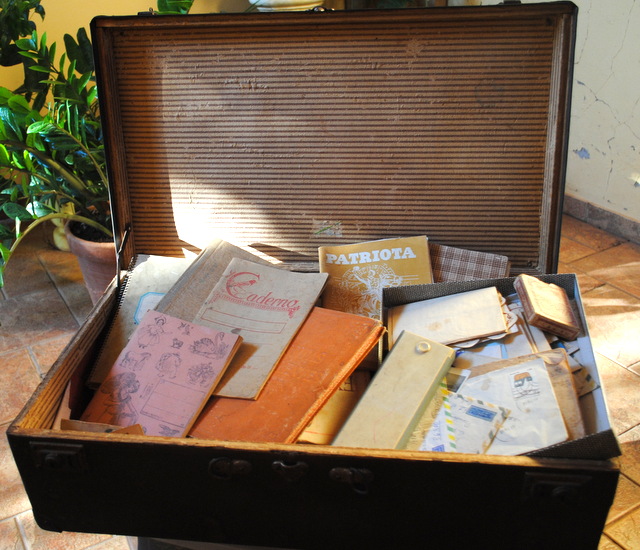 entre os postais antigos, alguns pertences como cartas trocadas entre as famílias: