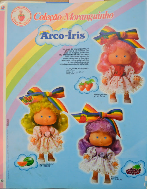 Você viu que relançaram a coleção da moranguinho? Na caixa está escrito que é a coleção original de 84, mas vendo as fotos dos catálogos no seu blog, na verdade a coleção é a de 1986. Fiquei frustrada, eu tinha o limãozinho de 1984 e minha irmã a moranguinho, queria poder comprar esta versão da minha infância.