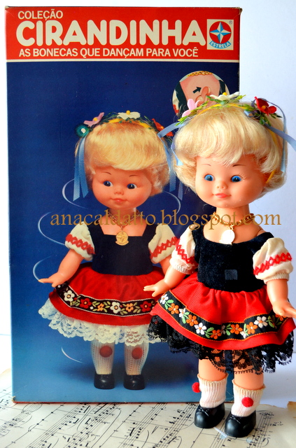 Coleção Cirandinha da Estrela de 1982, Bonecas acionadas à corda que dançavamBoneca Cirandinha Bailarina, Cirandinha Emilia, Palhaço Pierro, Boneca cirandinha Caipira, Cirandinha Dama e Cirandinha Tirolesa: