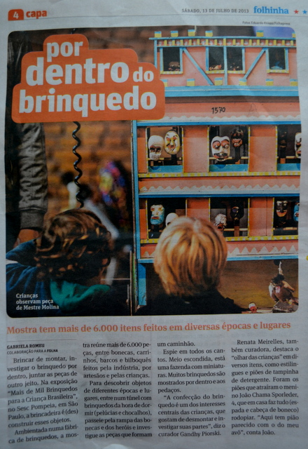Folhinha dedica 3 paginas sobre assunto Exposição Mais de Mil brinquedos para a criança Brasileira: