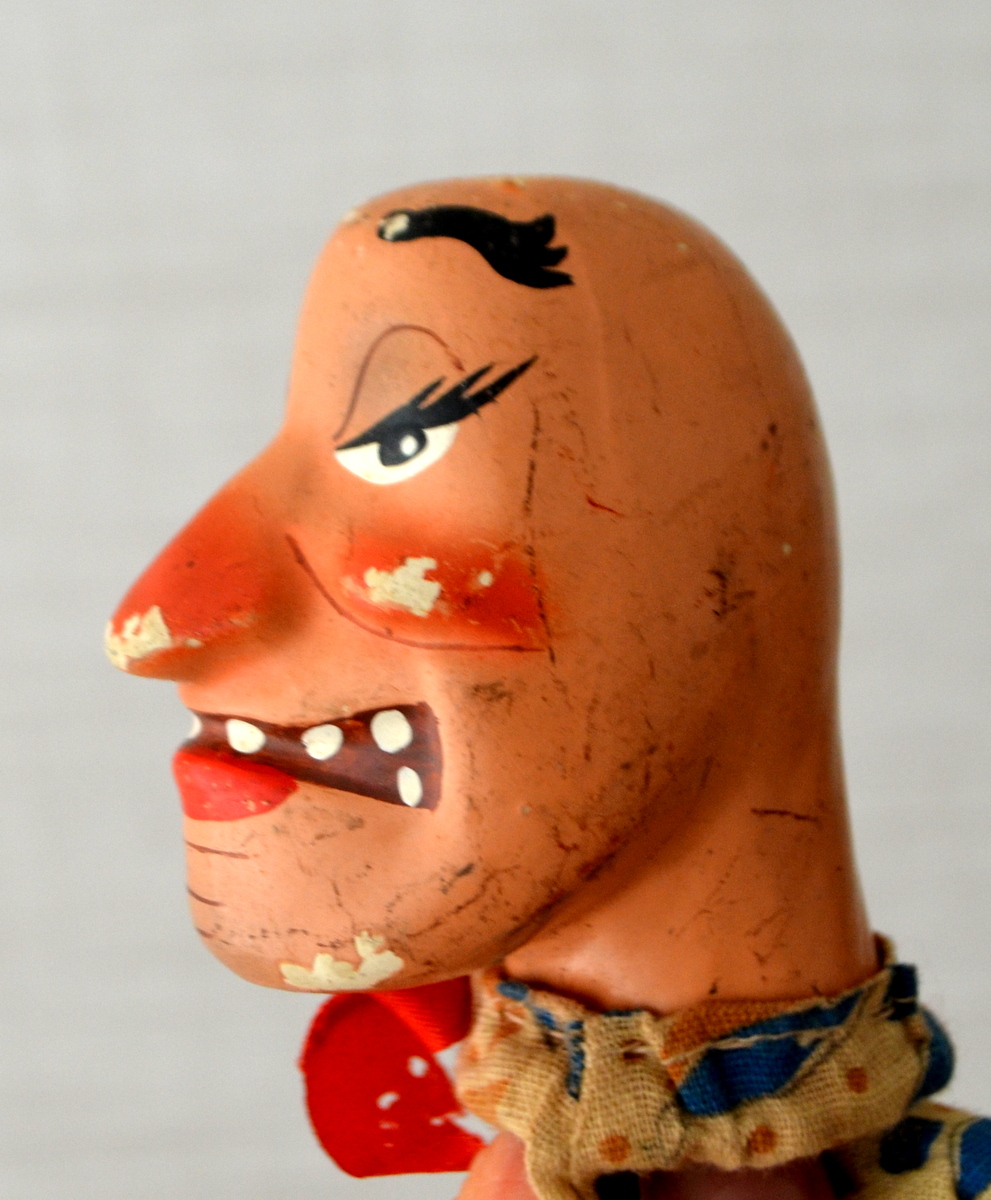 Brinquedo Palhaço Peralta, peça decorativa para berço, atraia a atenção do Bebê ao puxar a cordinha com anel colorido acionava o movimento dos braços, esperneando produzindo um ruído engraçado, movendo também os olhos de um lado para o outro: