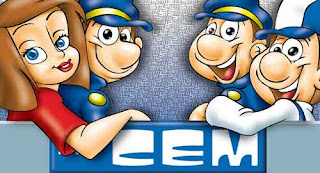 Os 3 bonecos mascotes promocionais da rede de Lojas CEM são tipo bonecos "agarradinhos" como a foto do Boneco MEC-NISTA (MEC) é a sigla CEM invertida: