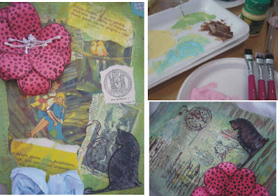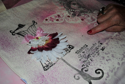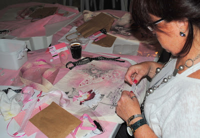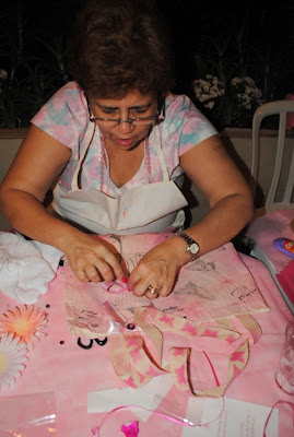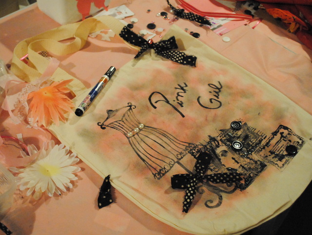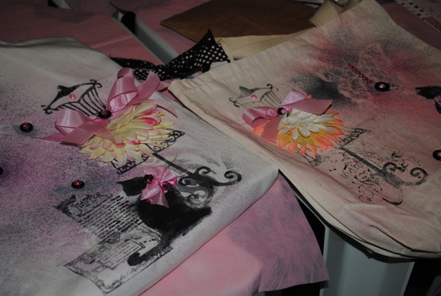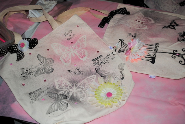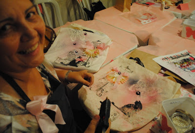 finalizamos as bolsas com enfeites ornamentos diversos e muita risada: