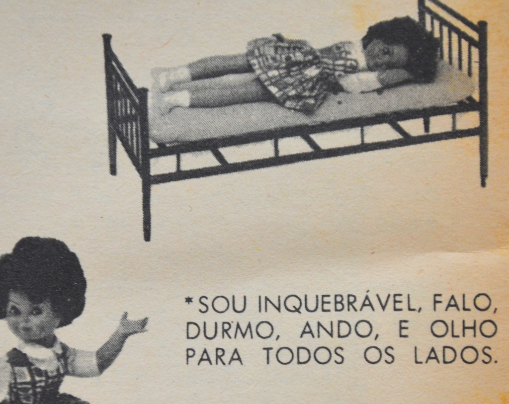 Mini cama de madeira fazendo parte da propaganda da boneca Pierina da Trol: