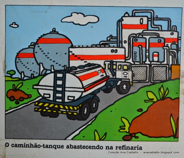 ilustração na embalgem do caminhão tanque Elka abastecendo na refinária: