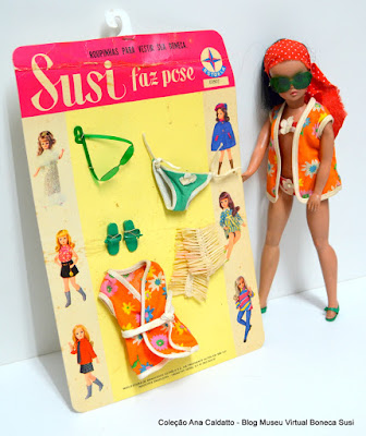 Boneca Susi com conjunto praia com kit de cartela de 1970