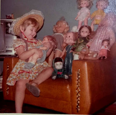 olhe a Jacqueline Maidana Coitinho entre suas bonecas de Infância