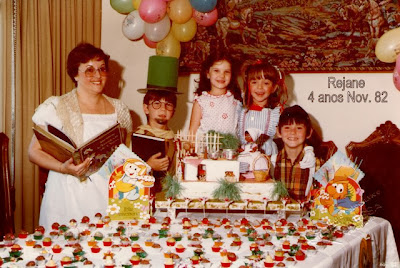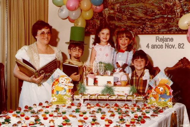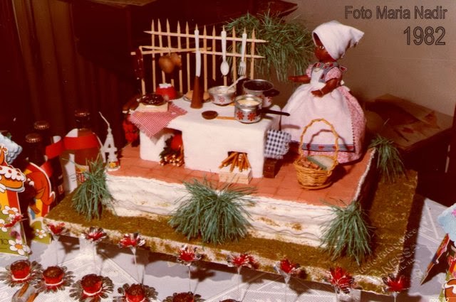 Querida Ana: Minha filha Rejane, navegando, chegou até teu site, onde mostras brinquedos antigos. Em 1982 ela completou 4 anos. Como podes ver nas fotos anexas, fiz (eu mesma) o mesmo bolo da Revista Cláudia que ali mostras. Não fazes ideia da alegria dela ao ver a foto da revista, sem falar nos brinquedos que ela teve e que também encontrou. Agradecemos pela oportunidade de..."recordar é viver". Abraços.... Rejane e Maria Nadir:
