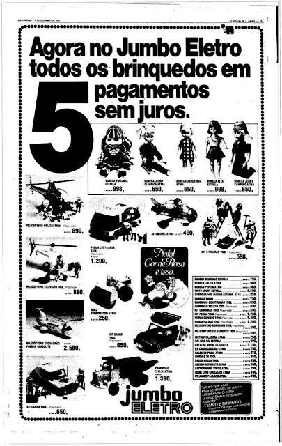 anuncio loja Jumbo Eletro em 1981 com oferta Boneca Emilia:
