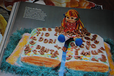 Boneca Emilia usada de decoração em Bolo de festa infantil anos 80: