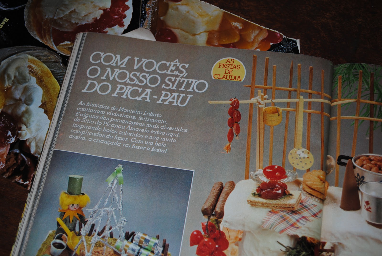 Fotos da decoração de aniversário e do bolo que ela fez com tema Sitio do Pica Pau Amarelo publicado na revista Claudia de 1982, fez todos detalhes idênticos, ate nas panelinhas de decoração, da boneca vestida de Tia Nastacia,