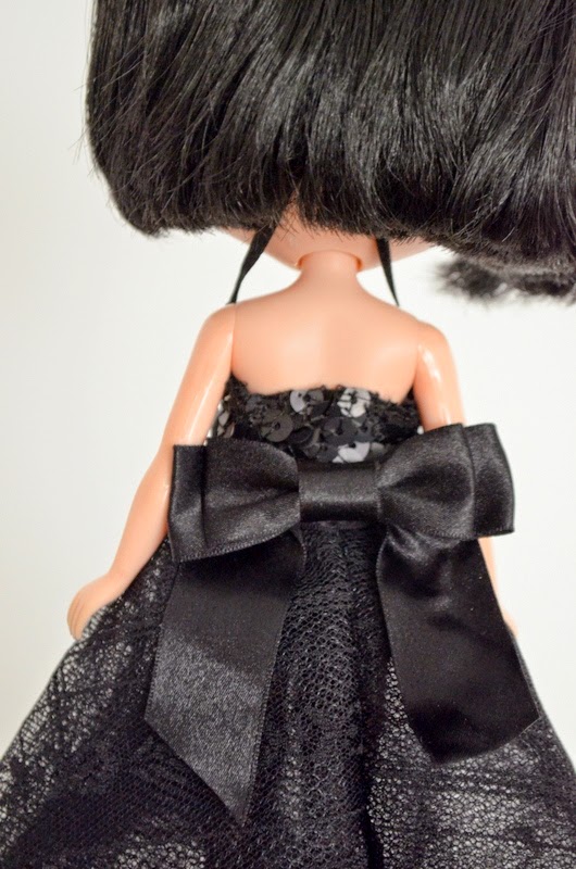 cintura da Blythe destaque nas costas um lindo e glamouroso laço preto:
