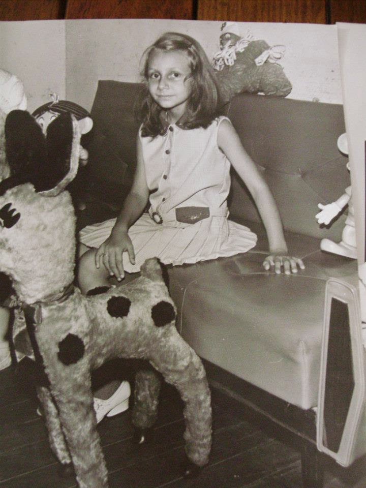Menina Andreza Reginato em 1978 entre seus brinquedos de infância abraçada ao seu Boenco Bambi de Chenil: