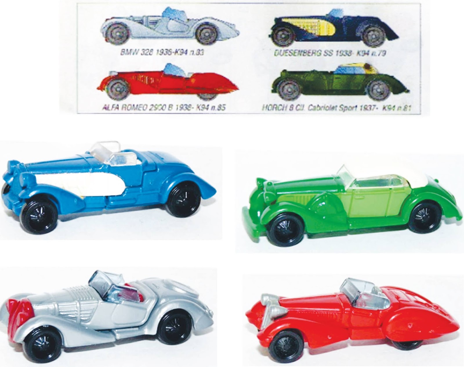 De 1993/1994 até 2004: com letra Inicial “K” que representa a marca kinder+o final do ano que a peça foi lançada Ex: K94. Os números podem ser encontrados em relevo na peça e/ou na instrução que a acompanha. Durantes os anos de 1994 até 2004 eram lançados aproximadamente 130 peças anuais. Isso significa que neste período foram lançados 1430 brinquedos.