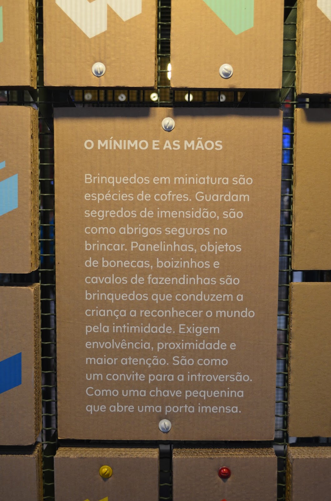 itens miudos de manusei do brincar da criança foram expostos em vitrines grandes na exposição