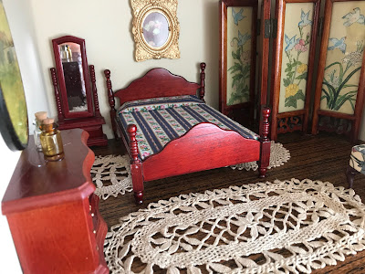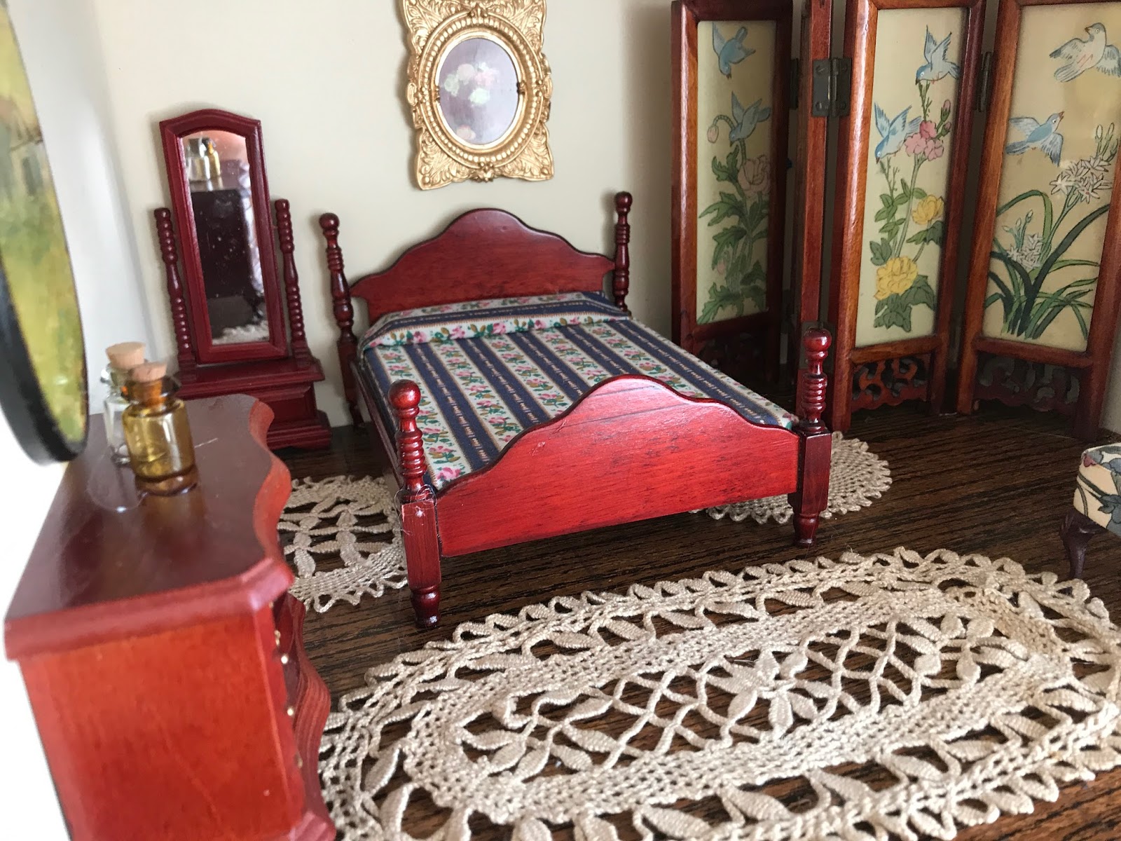 antigas toalhinhas de crochê de penteadeiras fazem parte agora do cenário de casa de boneca: