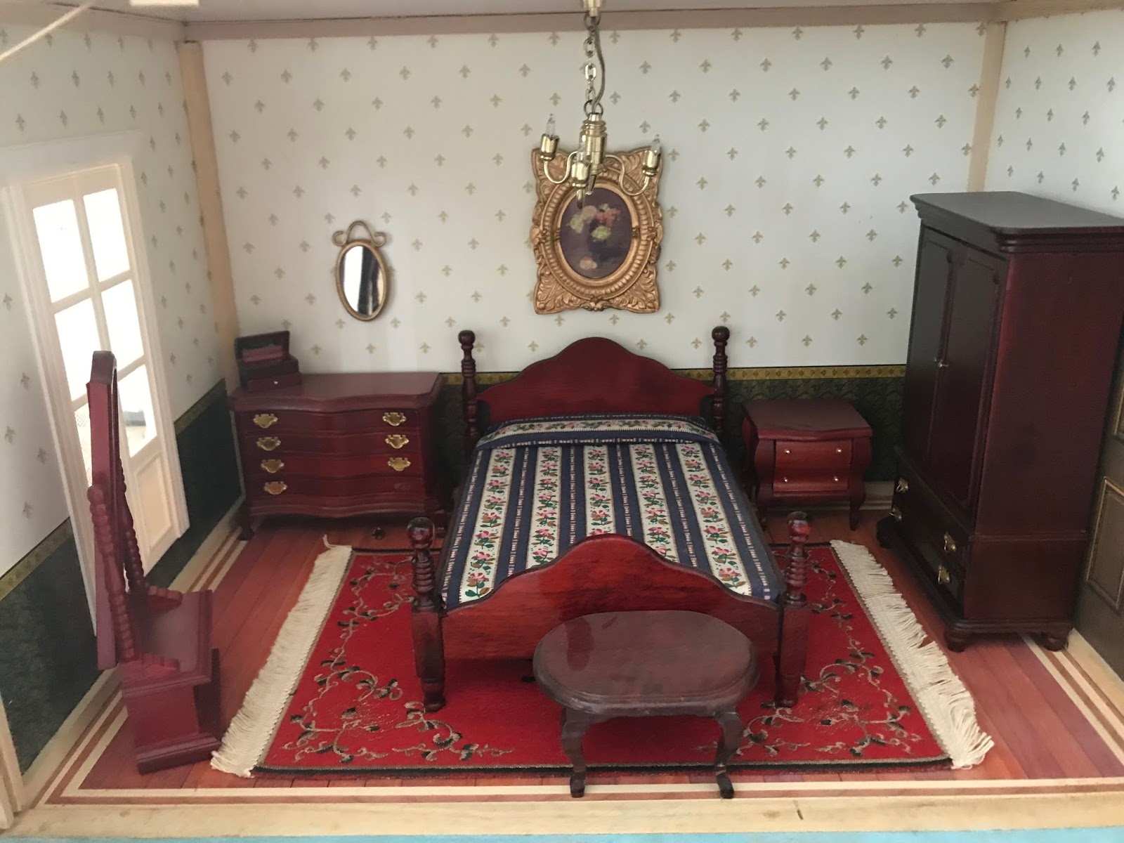 casa de boneca ou casarão em estilo vitoriano antigo mobiliada com mini móveis da época:
