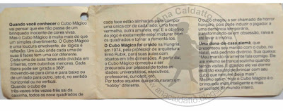 TAG original que acompanhava o Cubo Mágico que foi lançado no Brasil anos 80 pelo fabricante de Brinquedos MIMO:
