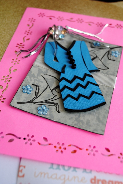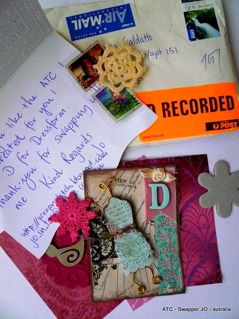 este foi o ATC letra D - Doll Dress que enviei à ela: