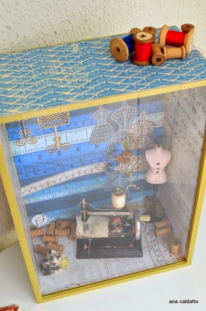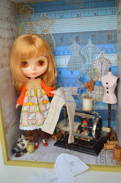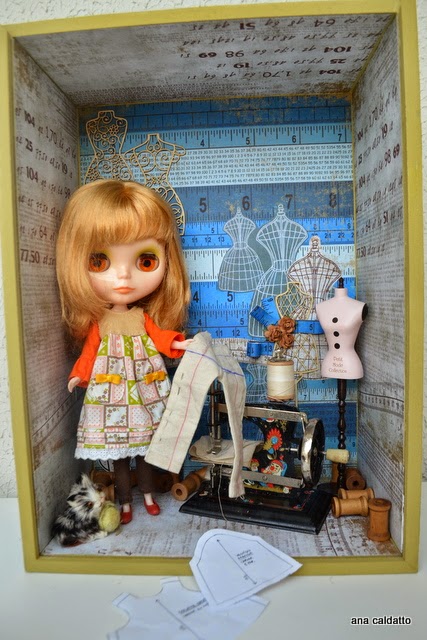Caixa Expositora feita exclusivamente para minha boneca Blythe com tema costura para expor no BlytheCon 2014,