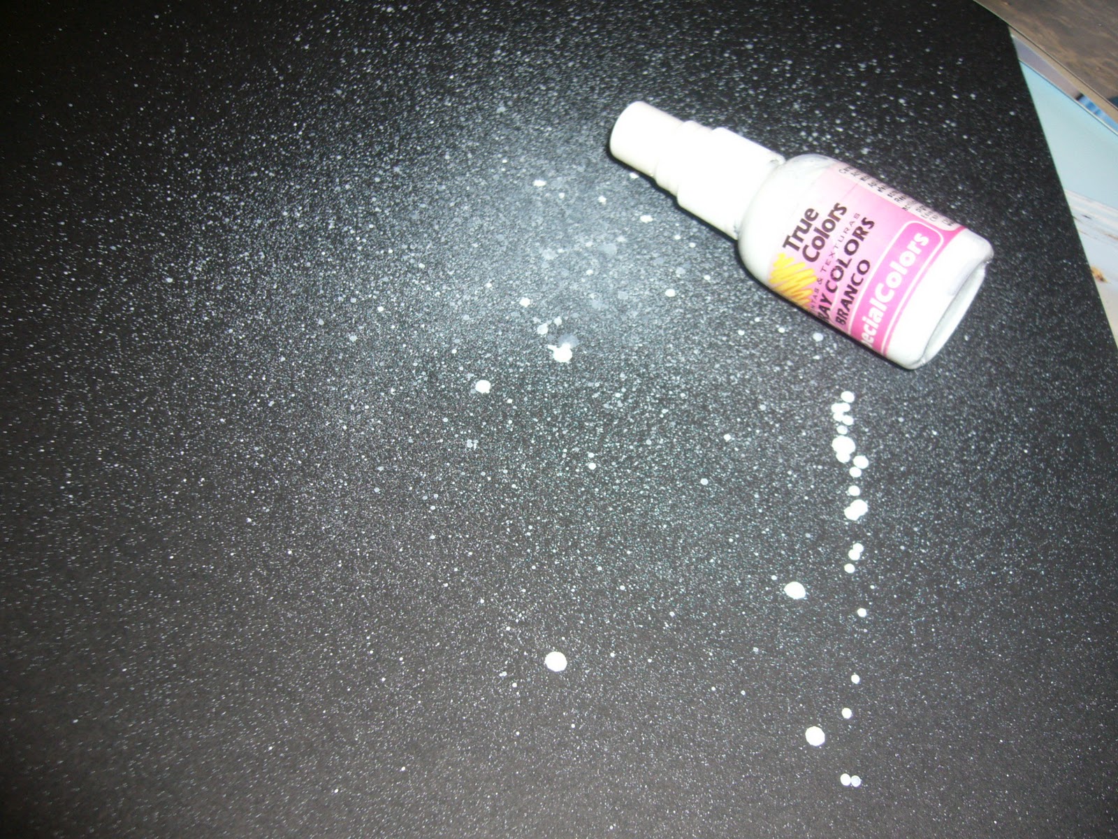 comecei criando fundo - aplicando spray branco no papel preto: