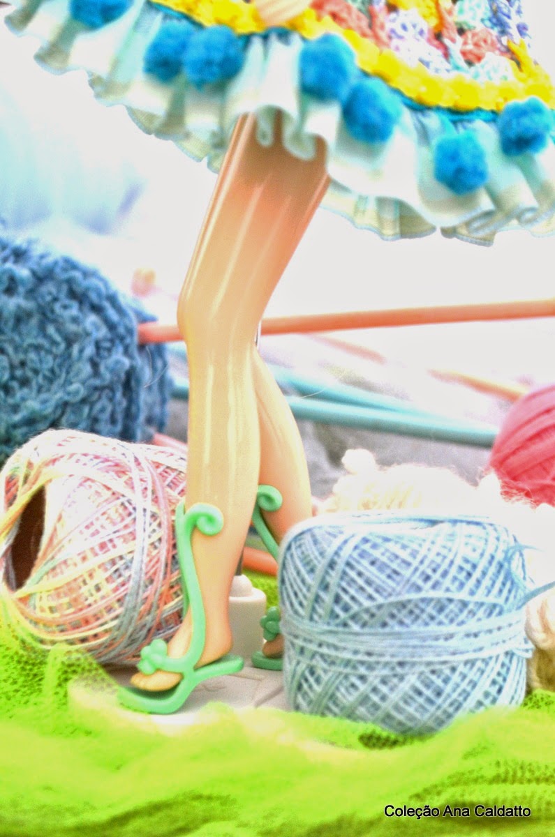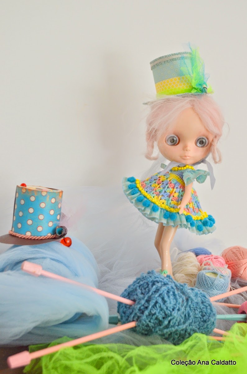 usei antigas e originais agulhas de tricô pra decorar a chapéu cartola da boneca Blythe: