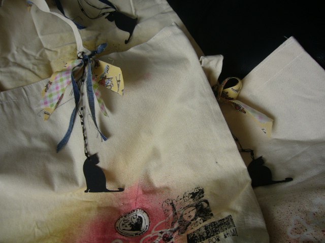 finalizamos as bolsas com enfeites ornamentos diversos e muita risada: