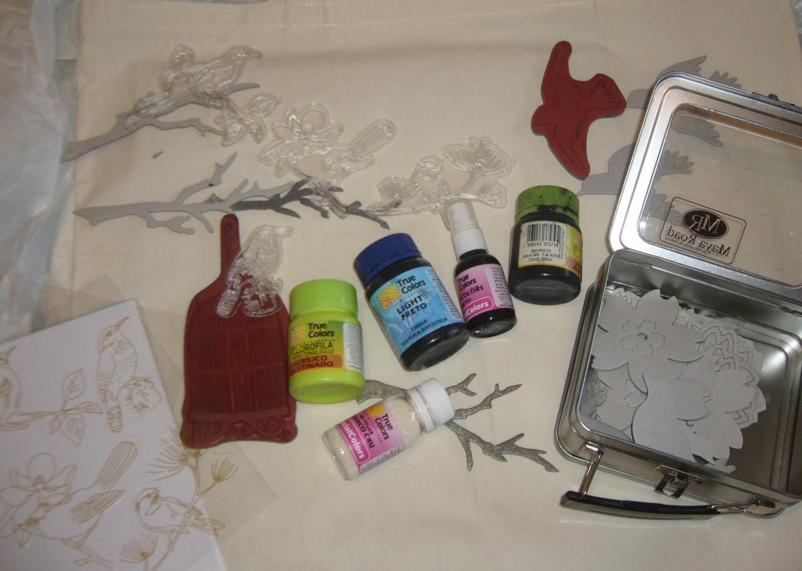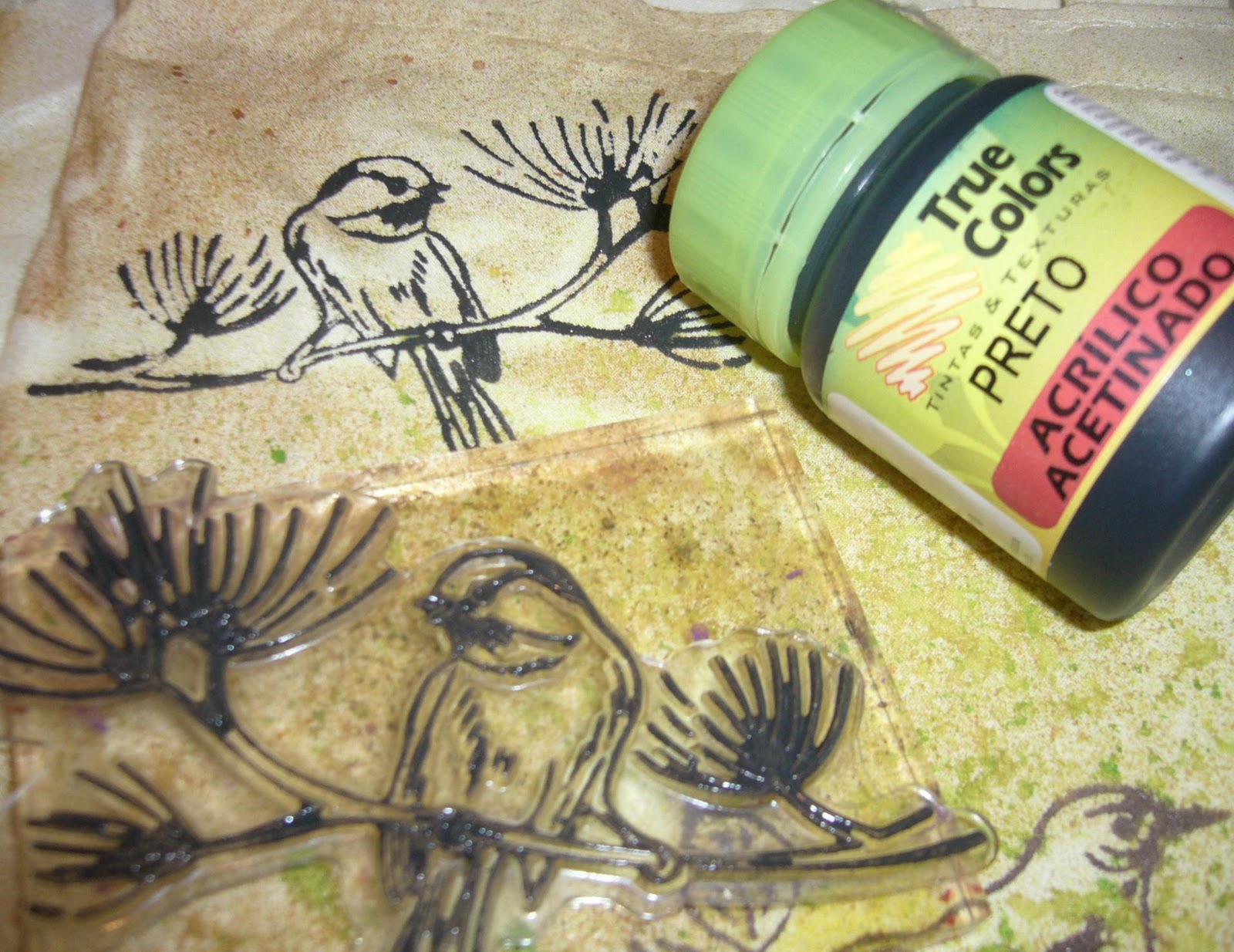 com famoso efeito mascara usando spray True Colors, tintas, carimbos e diversos ornamentos: