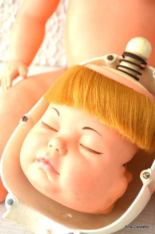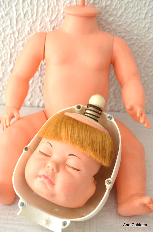 como é corpo e mecanismo da cabeça boneco babê Benzinho de 3 faces:
