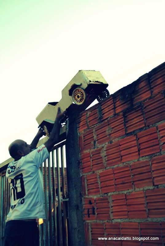 outro achado foi um velho Brinquedo carro de lata  Jeep Bombeiro modelo 450, marca Brinquedos Bandeirante, acreditem estava exposto sobre muro de uma residência:
