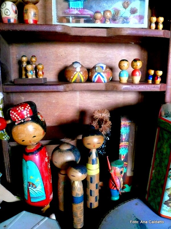 Sou feliz de te-las "adotado" aos longos dos anos, elas contam muita historia por onde passaram. As pequenas bonecas Kokeshi são de madeira feito a