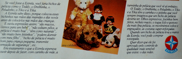 propaganda da Estrela divulgando coleção de pelúcia de 1979: