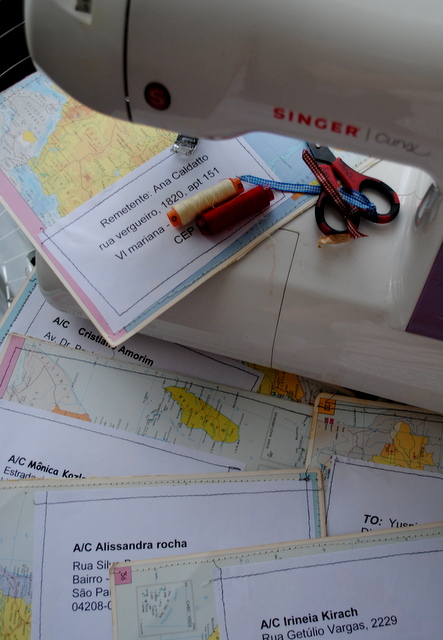 costurei as bordas das páginas formando envelopes únicos e exclusivos: