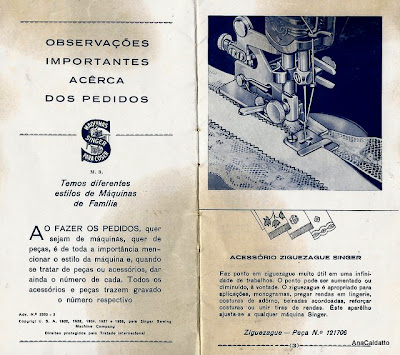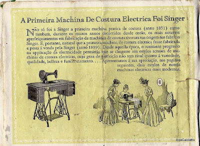 encontrei este velho catalogo de maquina 'MACHINA" de Costura Singer de 1929,