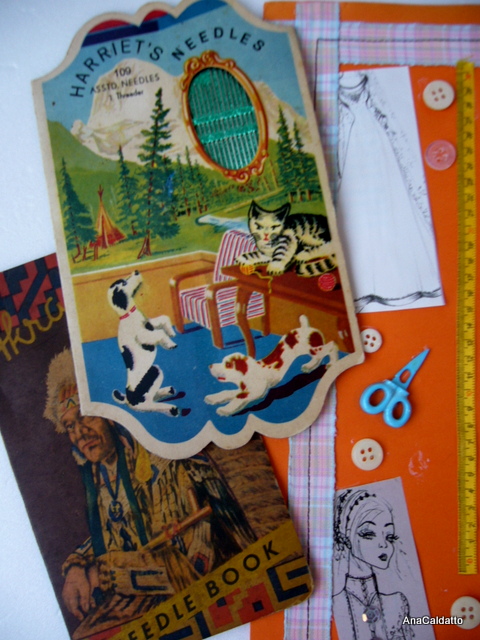 em 2006 fiz uma pagina de scrapbooking com tema Costura com minha mãe (época que faziamos nossas páginas de scrapbooking sem muitos materiais alternativos de enfeites como temos hoje disponível no mercado, fiz uma página relatando o dia a dia de "costureira" muitas clientes traziam desenhos de estilistas da casa Real Tecidos da cidade de Araçatuba...