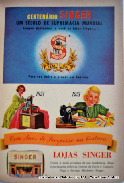 Catalogo Antigo Comemorativo aos 75 anos de Singer com imagem da 1ª máquina de costura Singer de 1851: