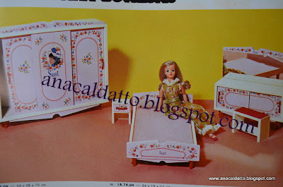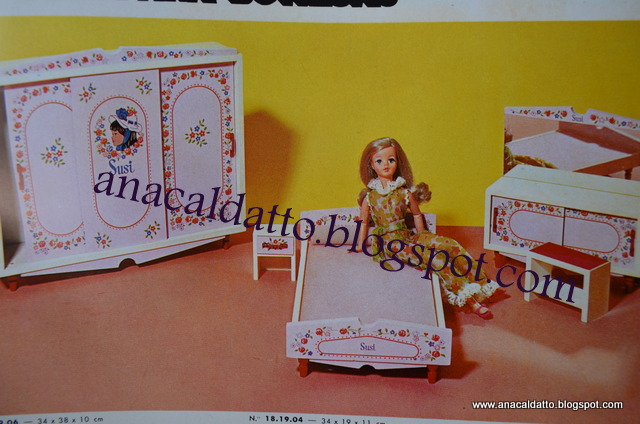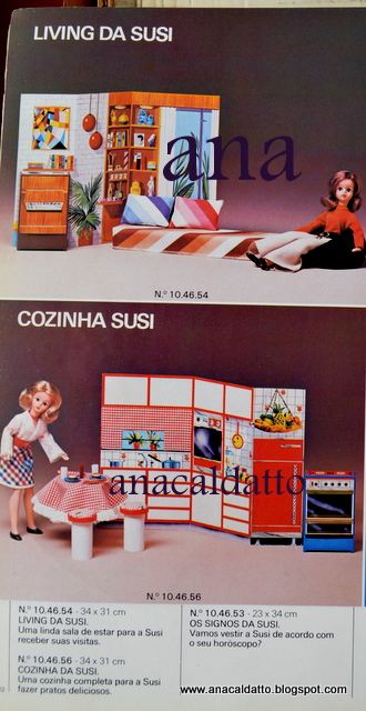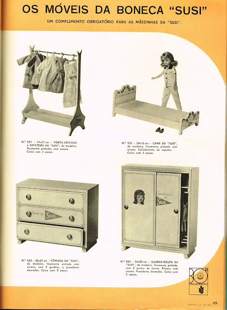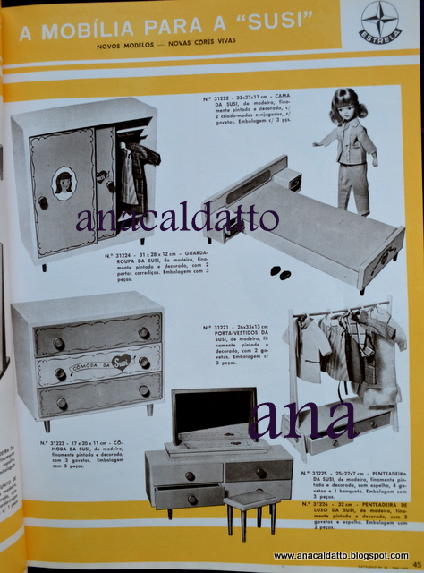 antigas imagens catálogos da Estrela 1º jogo mini móveis de quarto de 1967 da boneca Susi: