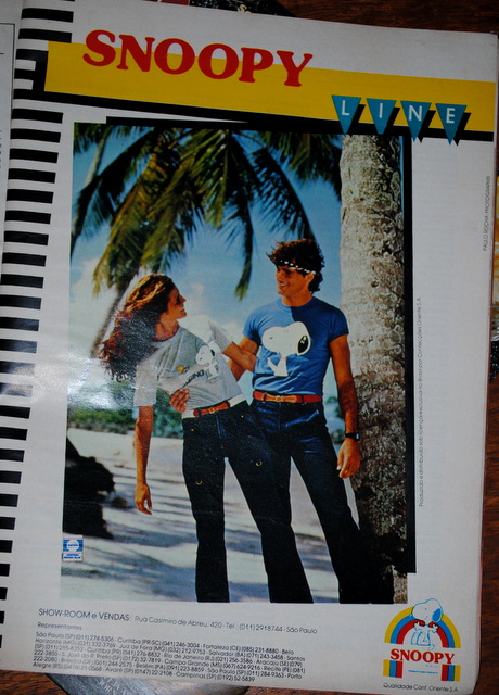 Foi moda usar acessórios e roupas (camiseta, calça jeans, meias, lenços e cintos com tema Snoopy década de 80.