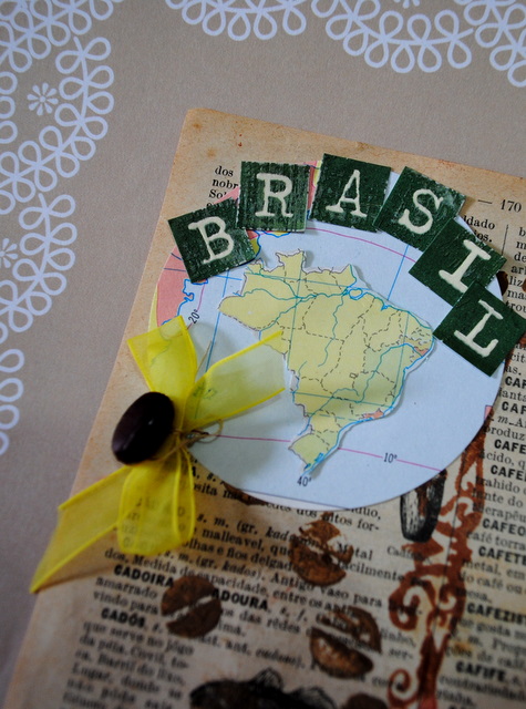 Mapa do Brasil com adesivos sugerindo tema: Café do Brasil