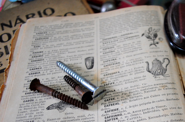 com diferentes tamanhos de parafusos e tinta é possível criar um background na antiga página de dicionário com tema Café: