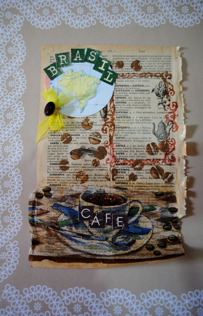 recortei guardanapo com tema café, e fiz colagem utilizando técnica decoupage: