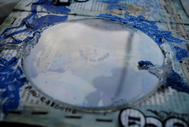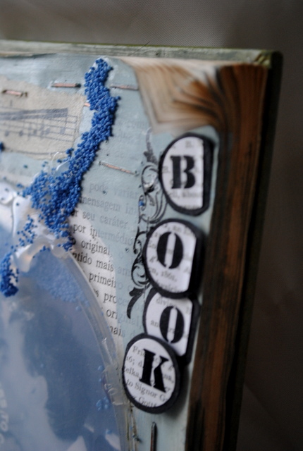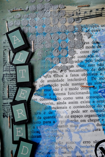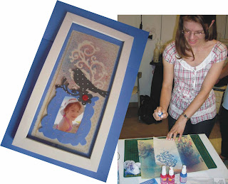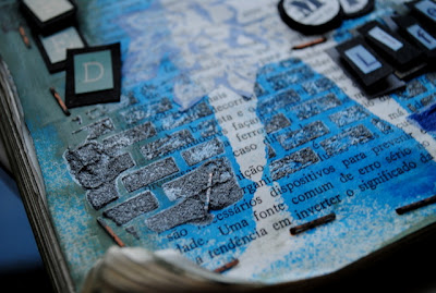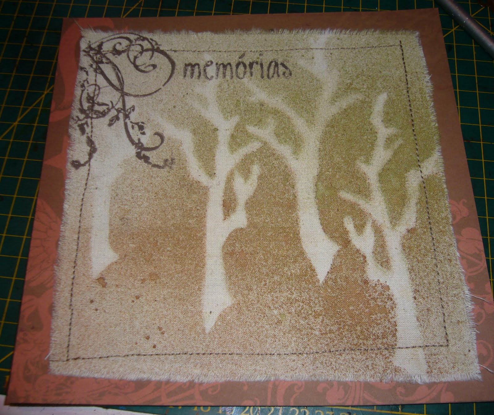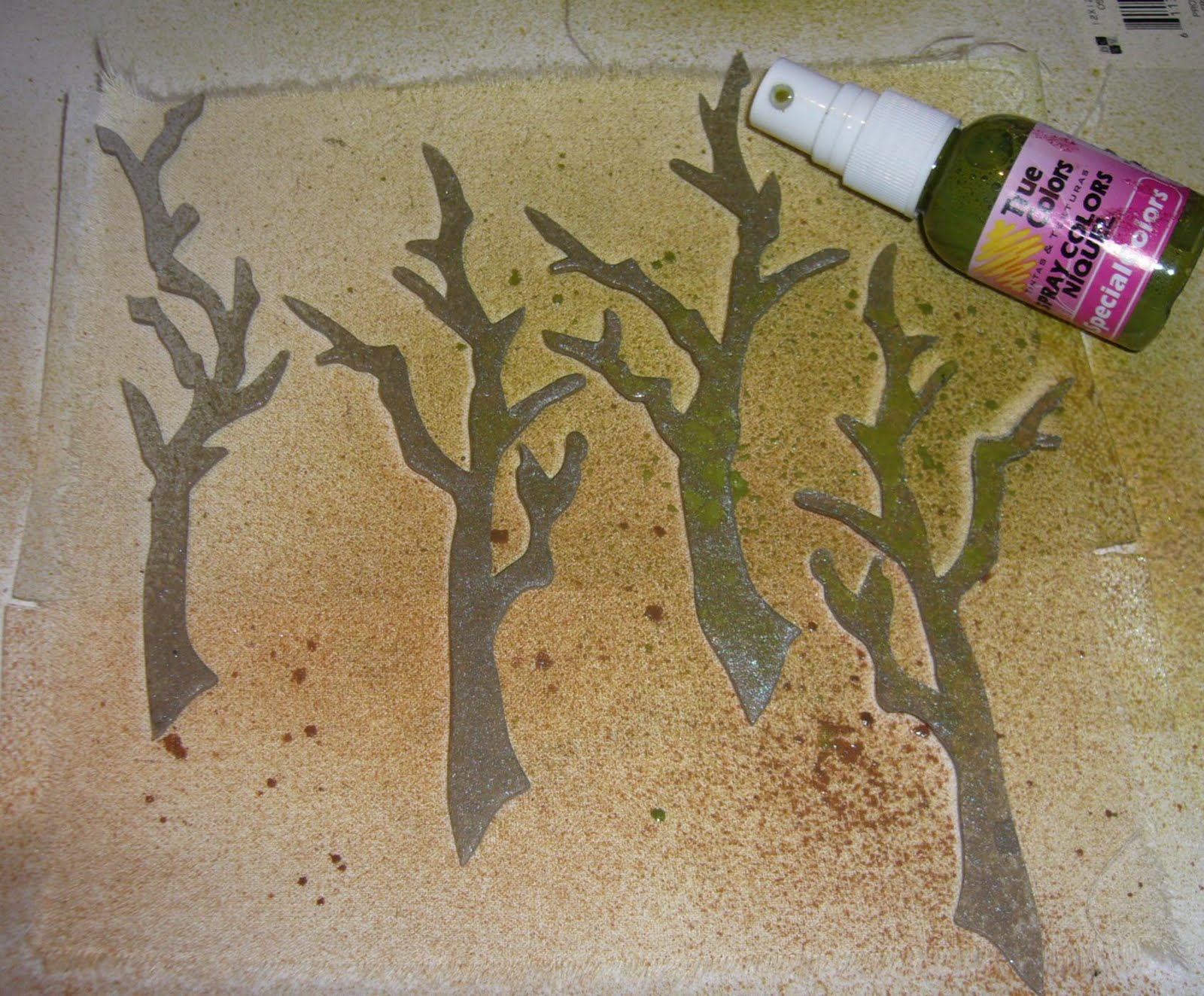 dica: aplicação dos spray colors no tecido em canvas usando peças de chipboard como mascara: