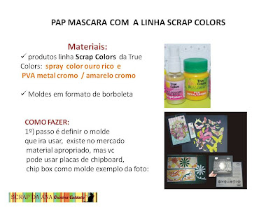 com demonstrações gratuitas nos papeis de scrapbooking c/ produtos da linha Scrap Colors, Bits (micros esferas), texturas, sprays colors as tintas do momentos q estão fazendo maravilhas nos layots das paginas de scrapbooking.